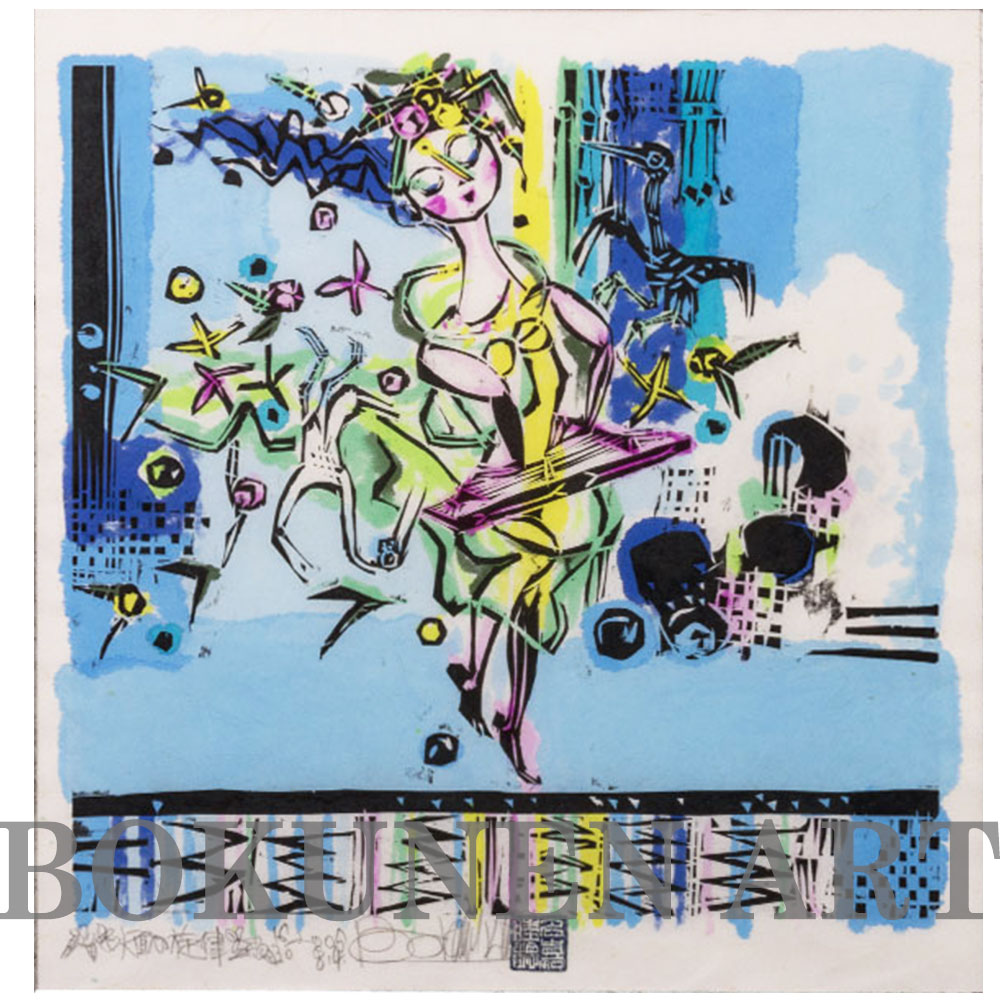 水面の旋律 木版画