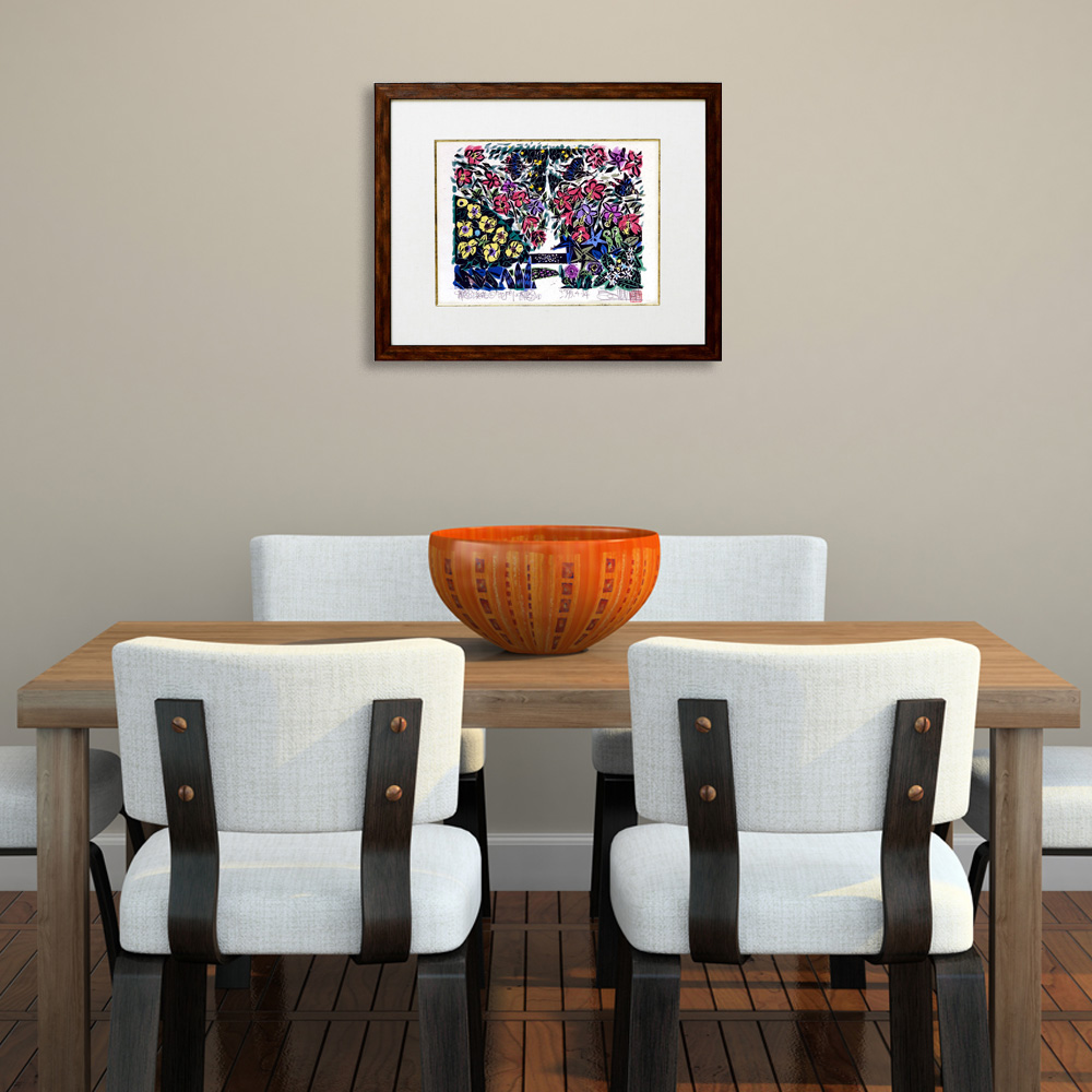 彩色までも版によって行う浮世絵とは違い、ボクネンの手で1点ずつ着色が行われます。そのため、同じ絵柄を何枚も作成できる版画ではあっても、全く同じ色合いの作品はありません。また、和紙の繊維の間から滲み出した色は、表面から直に着色するよりも自然な味わいがあります。