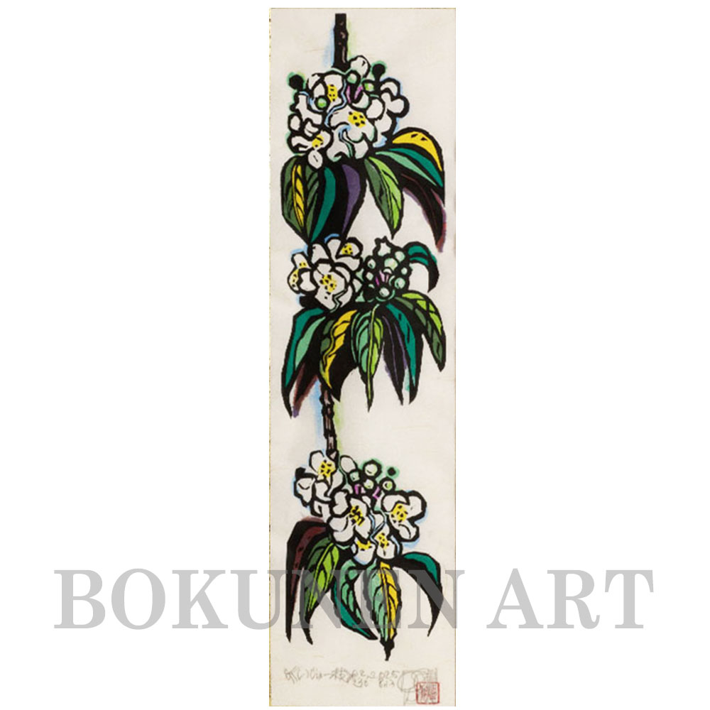 彩色までも版によって行う浮世絵とは違い、ボクネンの手で1点ずつ着色が行われます。そのため、同じ絵柄を何枚も作成できる版画ではあっても、全く同じ色合いの作品はありません。また、和紙の繊維の間から滲み出した色は、表面から直に着色するよりも自然な味わいがあります。